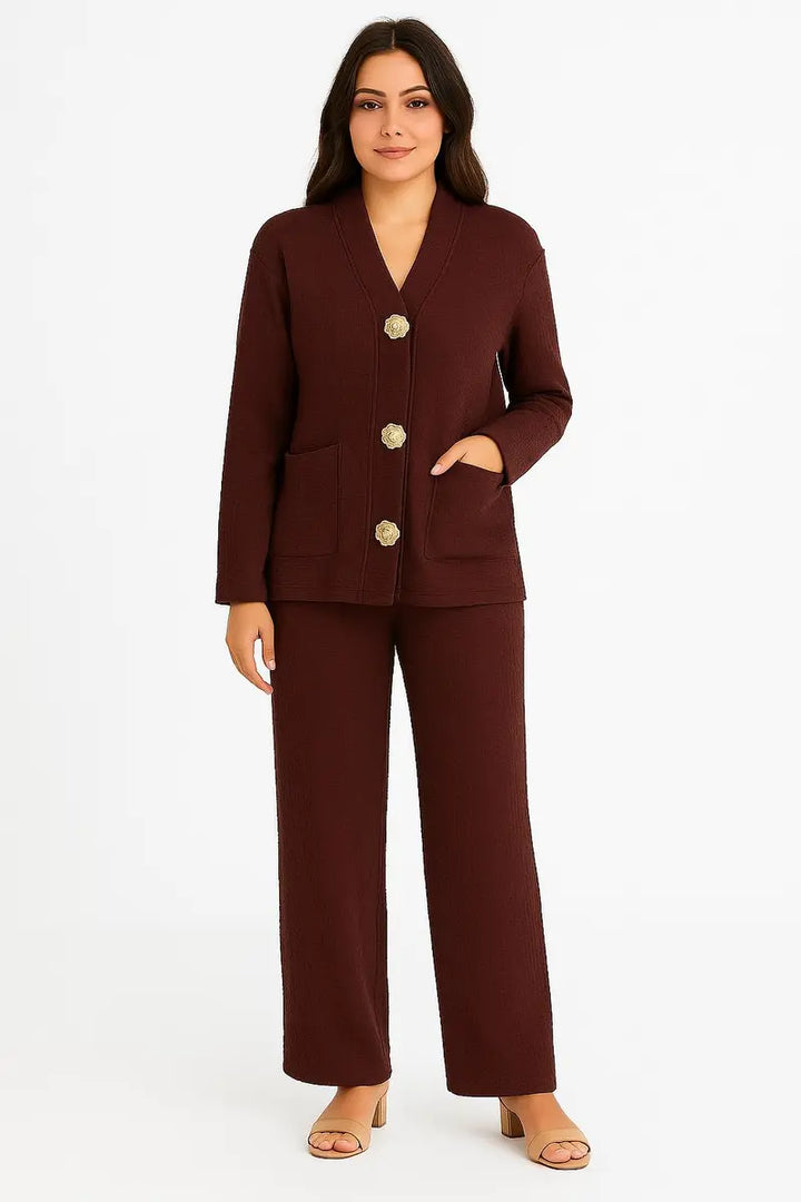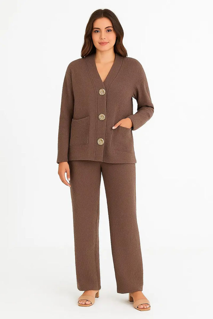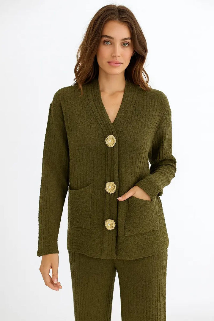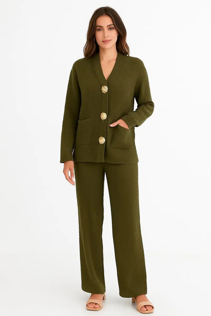 Kind Vibe Women's Gold Button Long Sleeve Top and Trouser Co-Ord Set