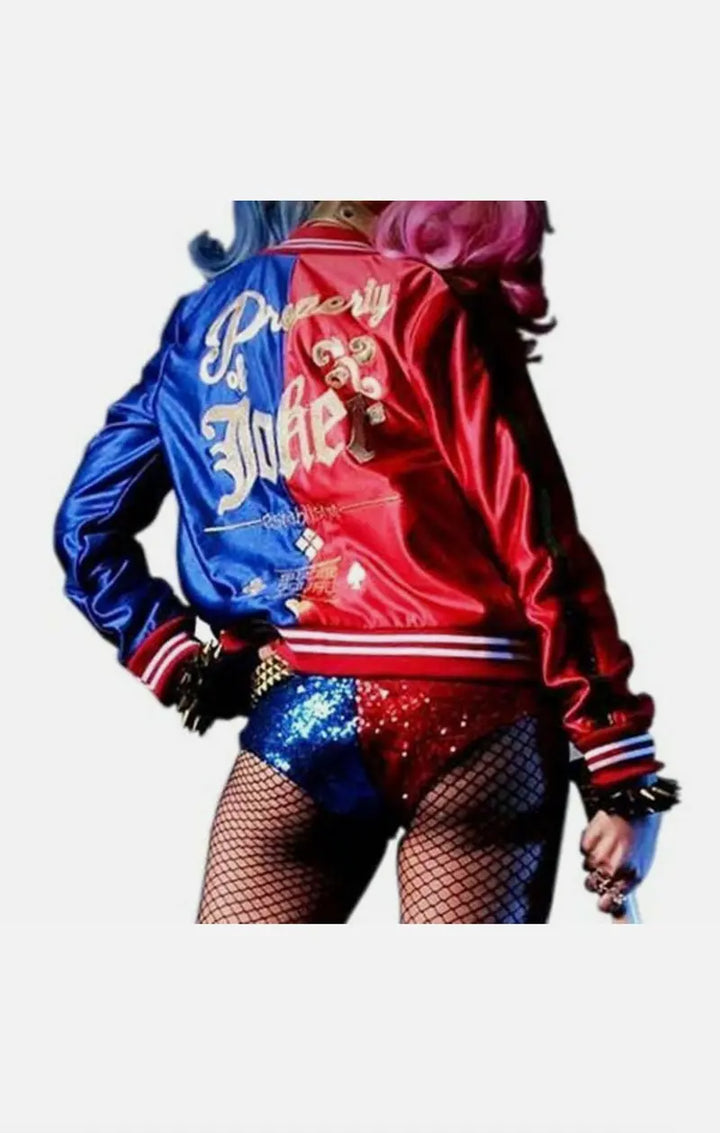 Kind Vibe Women's Harley Quinn Halloween Red Blue Jocker Bomber Jacket Shorts Legging