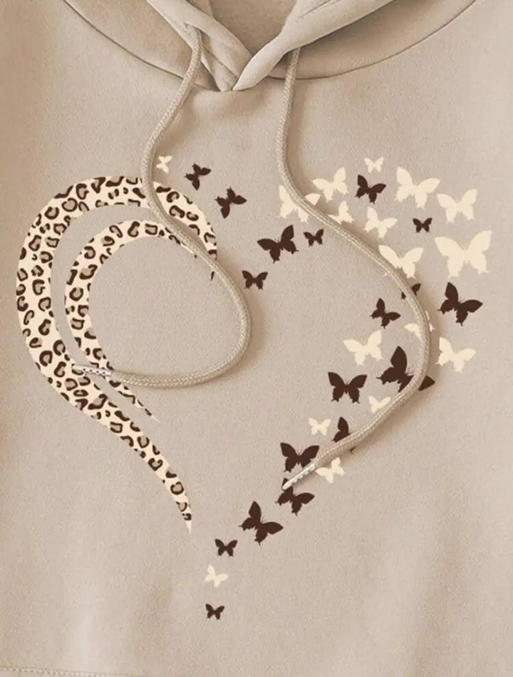 Kind Vibe Womens Long Sleeve Butterfly and Hearts Graphic Print Hoodie