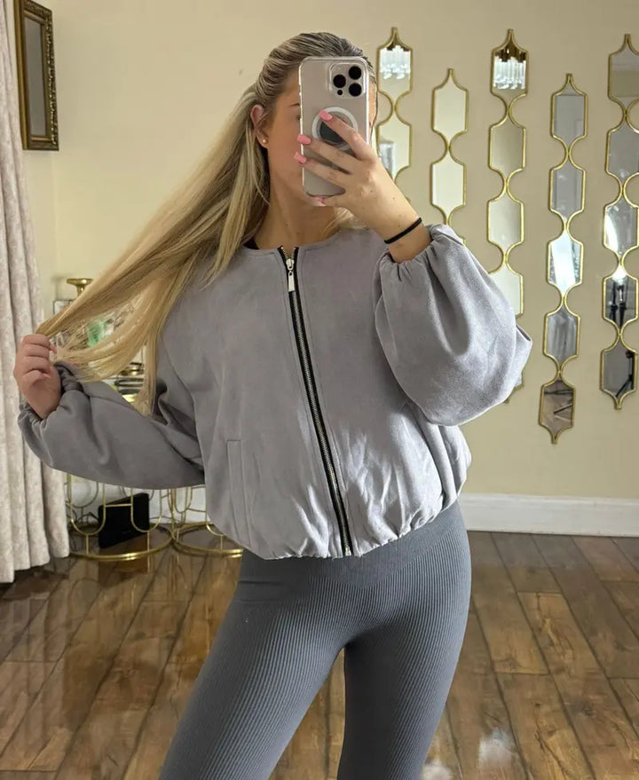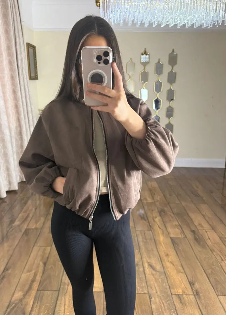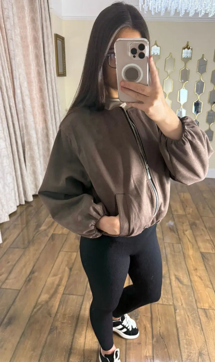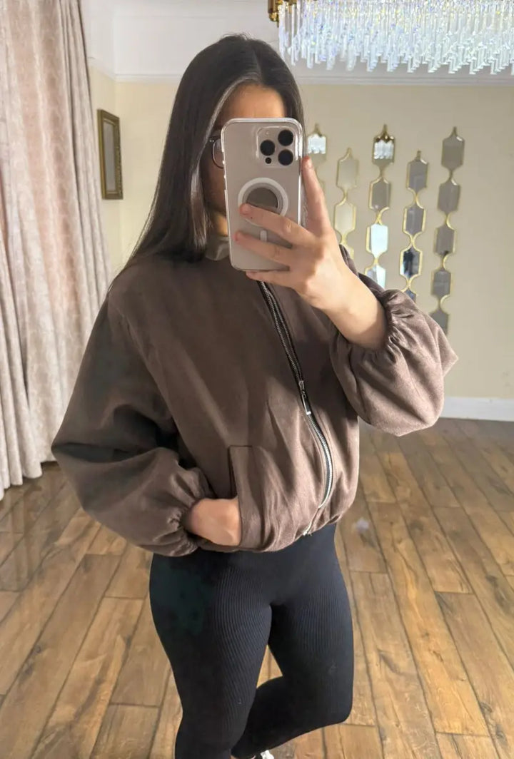 Kind Vibe Women's Premium Quality Suede Bomber Jacket (Made Iin Italy)